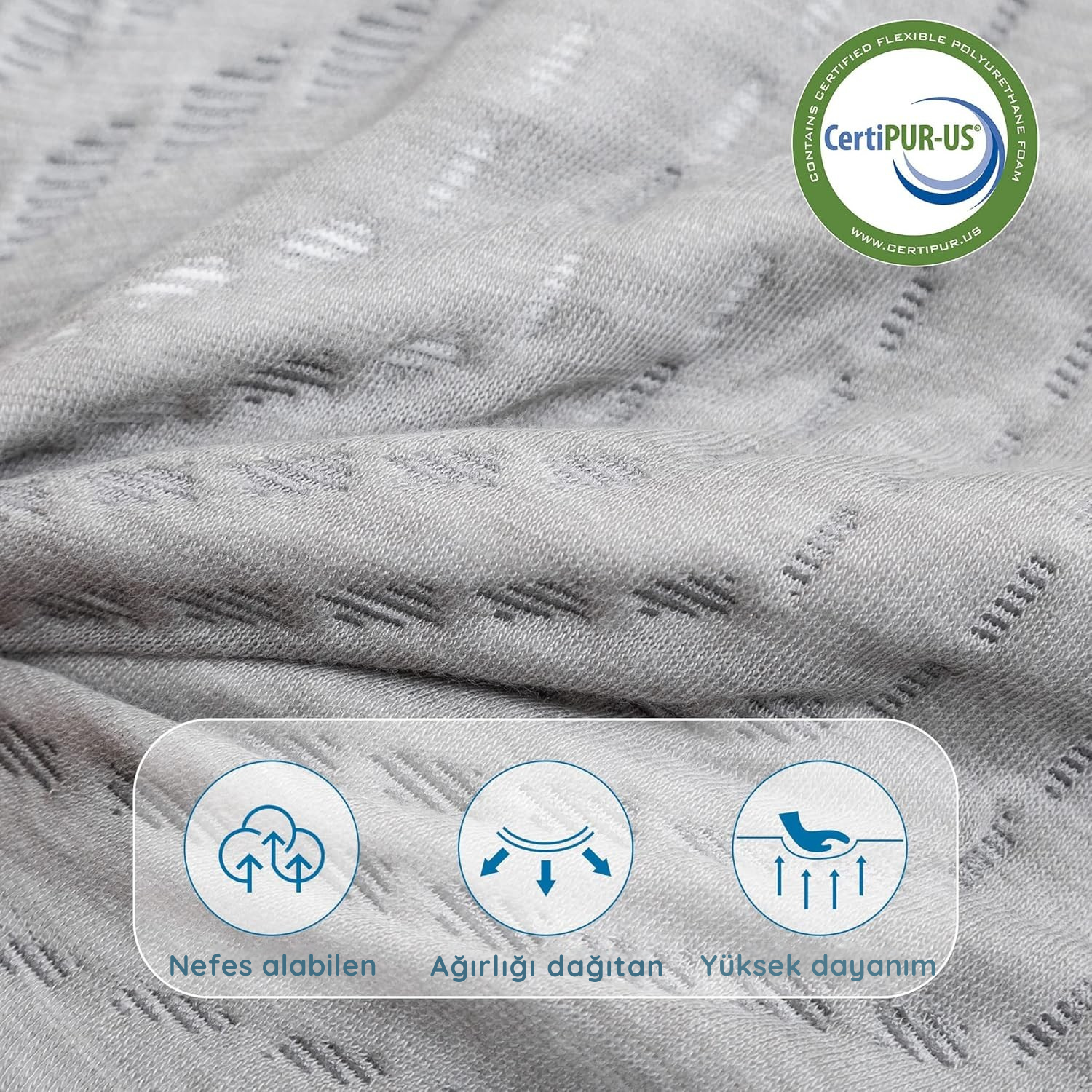 - Yatak Kılıfı: Nefes alabilen, esnek, dayanıklı ve yumuşak dokulu örme kumaş, hem konfor hem de uzun ömürlü kullanım sunar.