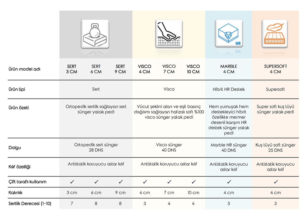 - Yatağınızı yenilemek ve arzu ettiğiniz özelliklere kavuşturmak için EcoTopper serisi yatak pedi sünger seçeneklerimiz sizlerle